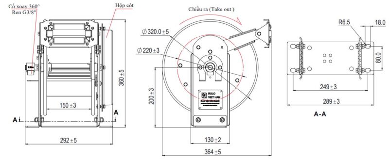 VRWA-620ST: Rulo cuộn ống rửa xe, phun thuốc. Máy dùng đầu rửa + dây cu loa + Mô tơ 1.5Kw – Dưới 2.2Kw.Kiểu lò xo